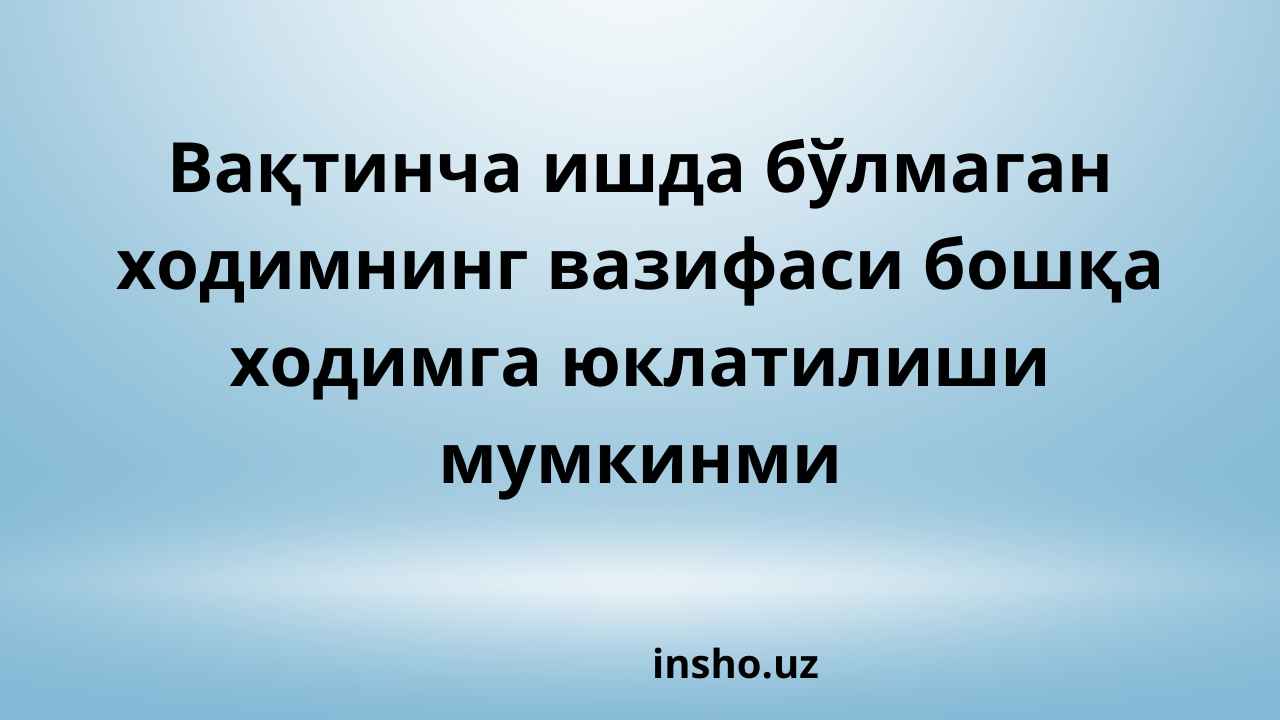 Савол❓ Мен мактабда укитувчиман 7-соат якка тартибда дарсим бор.ММИБДУ 11.12.2024 булитенга чикиб кетди.Директоримиз менга мактабдаги вактинча в/б бўлиб ишлаб туришимни айтди менга иш хакки тўланадими. ҲУҚУҚШУНОС ЖАВОБИ: Меҳнат кодексининг 116-моддасига асосан вақтинча йўқ бўлган ходимнинг вазифаси бошқа ходимга юклатилиши мумкин. Бунда ушбу ходимга Меҳнат кодексининг 259-моддаси билан қўшимча ҳақ тўланади.