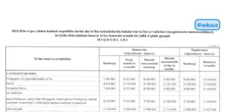 2025/2026-oʻquv yili uchun toʻlov-kontrakt miqdorlari tasdiqlandi