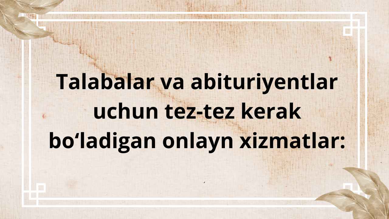 👨🎓 Talabalar va abituriyentlar uchun tez-tez kerak bo‘ladigan onlayn xizmatlar: